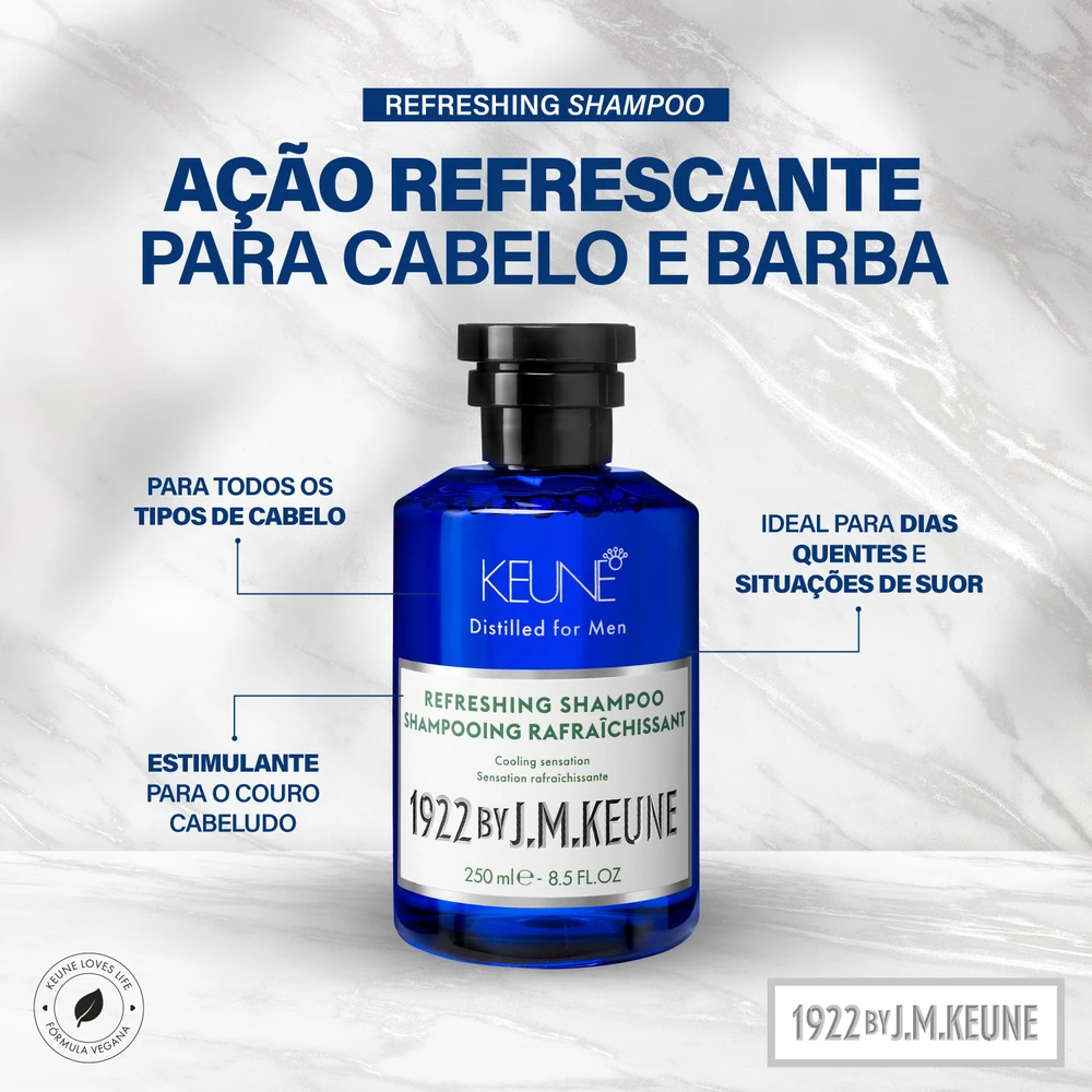O 1922 Refreshing Shampoo é a escolha definitiva para quem busca uma experiência de lavagem revigorante e gelada. Sua fórmula exclusiva é enriquecida com Mentol e Óleo de Hortelã-Pimenta, que estimulam o fluxo sanguíneo no couro cabeludo, proporcionando uma sensação fantástica de energia e limpeza profunda. Além do frescor, o shampoo utiliza a Creatina para reforçar a estrutura interna do fio, reduzindo a quebra e aumentando a vitalidade da fibra.