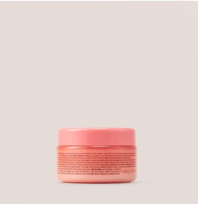 Com os cabelos limpos e úmidos, aplique uma pequena quantidade da Hair Protein no comprimento e pontas. Massageie suavemente para garantir a distribuição uniforme. Deixe agir por 5 a 10 minutos (conforme a necessidade do fio) e enxágue abundantemente. Pode ser usada semanalmente como tratamento reconstrutor.