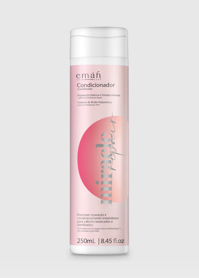 O Condicionador Miracle Repair é um sistema de recuperação lipoproteica projetado para cabelos que apresentam quebra frequente e opacidade extrema. Ao contrário de condicionadores comuns, sua fórmula é rica em Proteínas do Colágeno e da Seda, que atuam sinergicamente para reestruturar a cutícula capilar e selar os aminoácidos no interior do córtex. A Quinoa e o Ácido Hialurônico presentes na composição garantem que o fio mantenha seu equilíbrio hídrico, proporcionando uma maleabilidade superior e eliminando a porosidade.