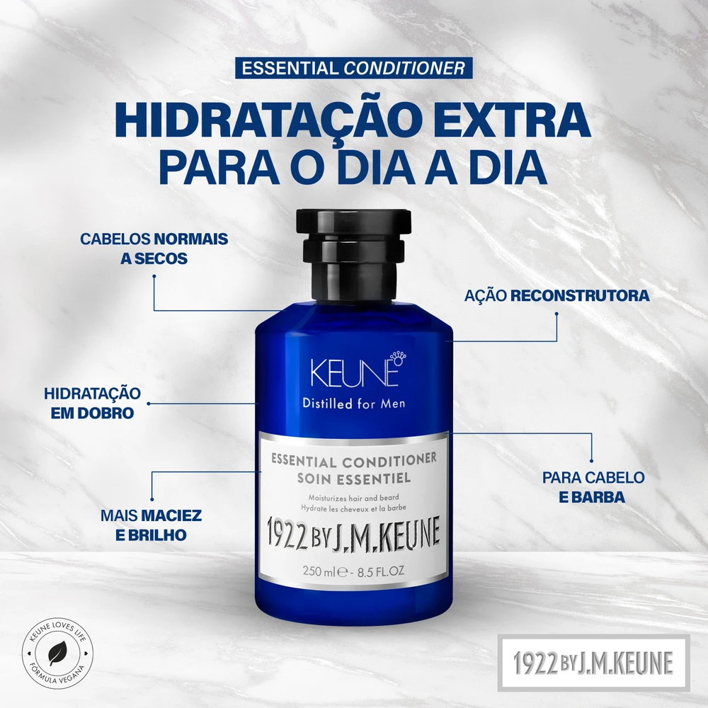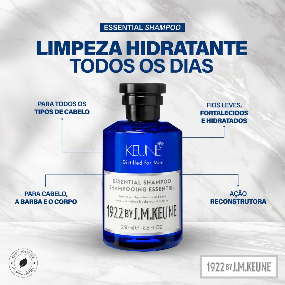 Unindo o Essential Shampoo ao Condicionador, este kit oferece praticidade extrema sem abrir mão da tecnologia holandesa. A Creatina e o Bambu fortalecem a fibra e aumentam a densidade capilar, enquanto a Manteiga de Karité do condicionador mantém cabelo e barba alinhados e macios.