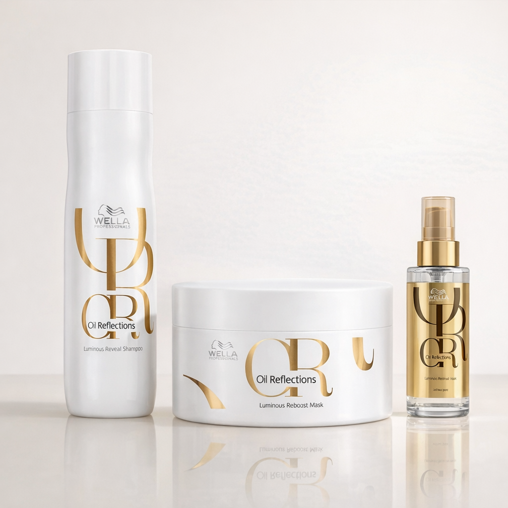 🛒 Pronta EntregaO sistema completo de luminosidade da Wella. Brilho espelhado, proteção térmica e nutrição profunda.