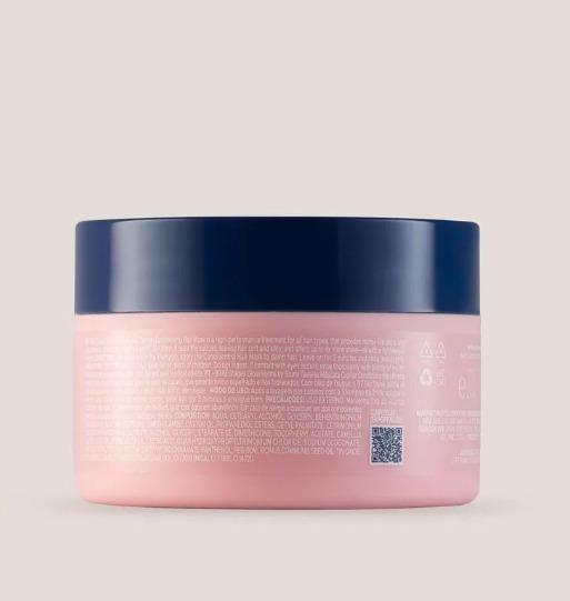 Modo de Uso: Com os cabelos limpos e úmidos, aplique a máscara mecha a mecha, do comprimento às pontas. Utilize a técnica de enluvamento para garantir a penetração dos ativos. Deixe agir de 5 a 10 minutos para uma hidratação intensiva e enxágue totalmente.